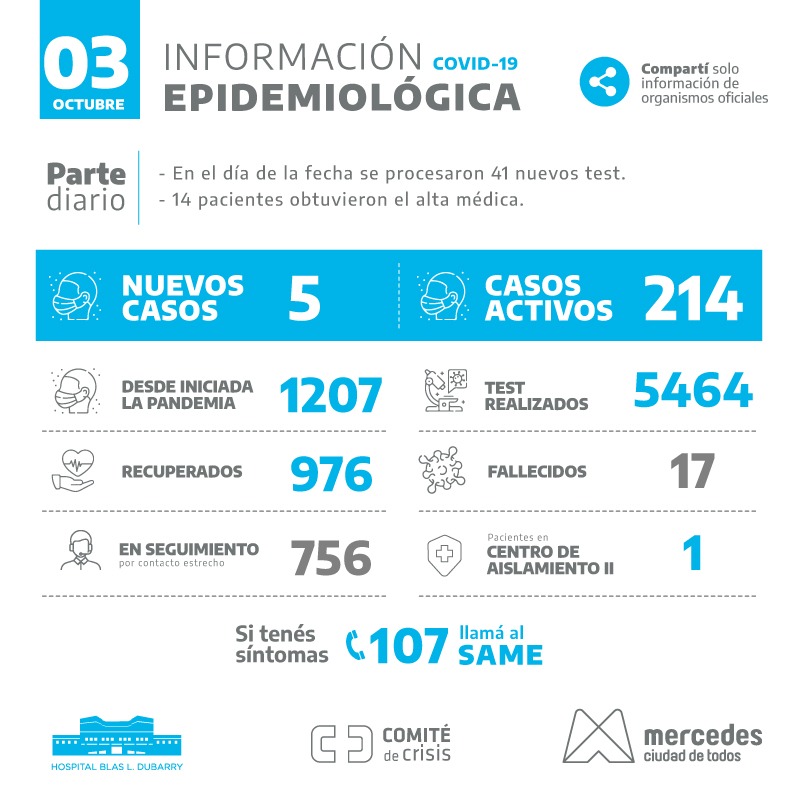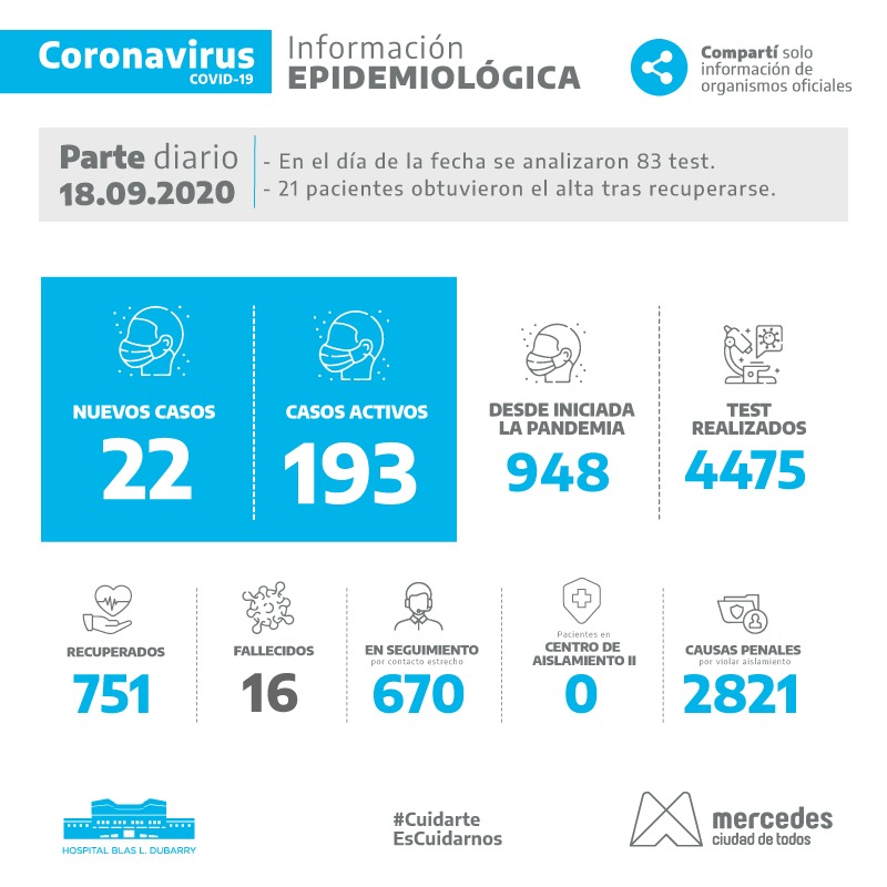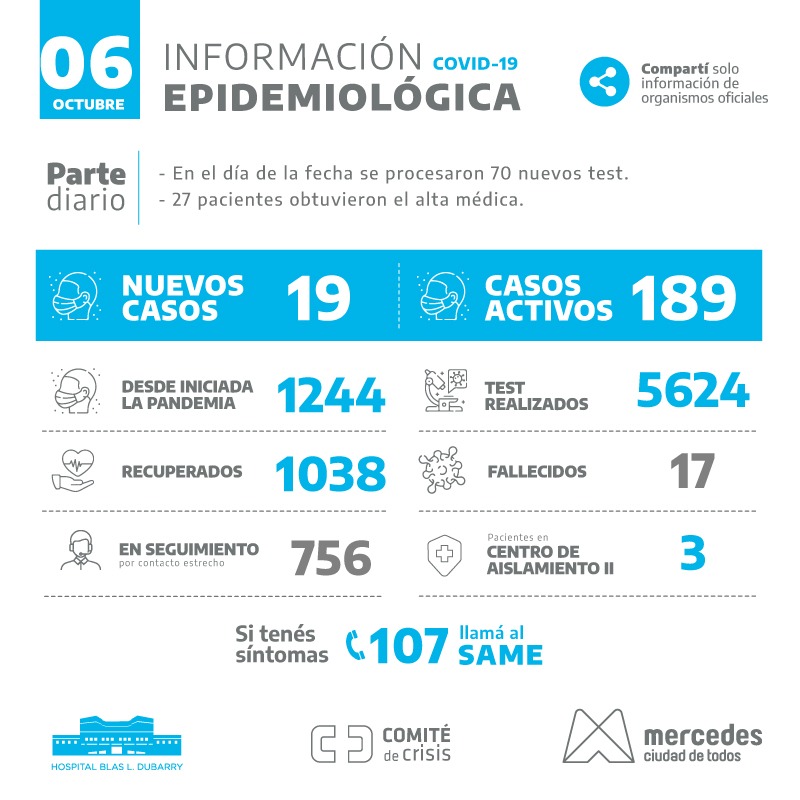 La información epidemiológica de este lunes en Mercedes confirma 16 nuevos casos positivos, alcanzando los 207 casos activos. La cifra alcanza desde el inicio de … Leer.