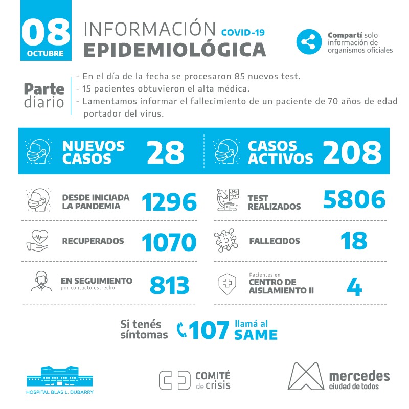 Este miércoles, la información oficial de Mercedes confirma que entre los 114 test realizados por el Laboratorio del Dubarry, la ciudad sumó 20 pacientes con … Leer.