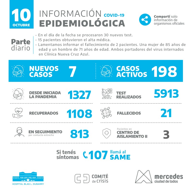 El informe enviado por las autoridades sanitarias de Mercedes confirma el fallcimientos de dos personas que portaban el virus y se encontraban internadas. Se trata … Leer.