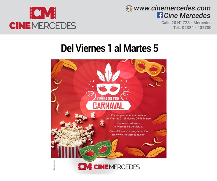 El Cine Mercedes anunció que estará cerrado en el fin de semana largo de carnaval.