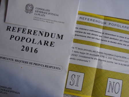 Mercedinos con ciudadanía italiana recibiendo la consulta popular para elegir si desean modificar una ley sobre explotación de yacimientos italianos o continuar con las mismas. … Leer.