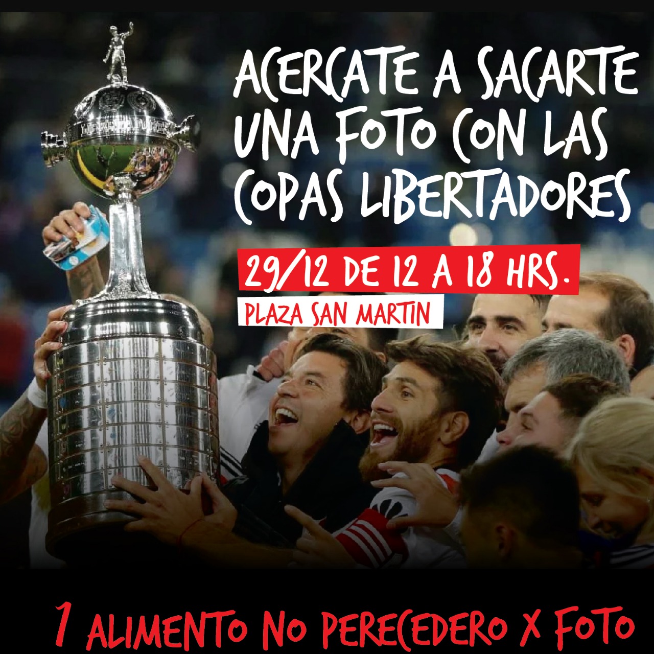 Este sábado desde las 12 horas en plaza San Martín estará la Copa Libertadores de América obtenida recientemente por el Club Atlético River Plate, más … Leer.