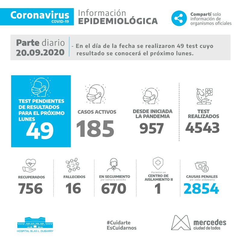 La información epidemiológica de este lunes en Mercedes confirma 16 nuevos casos positivos, alcanzando los 207 casos activos. La cifra alcanza desde el inicio de … Leer.