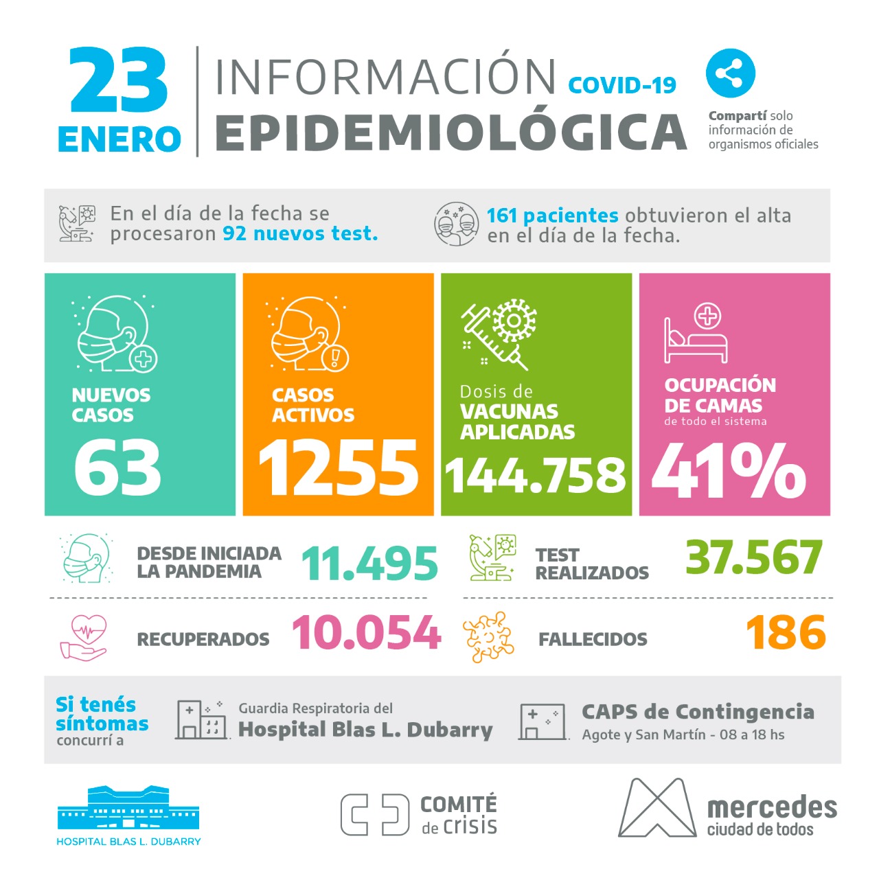 La información oficial sanitaria del domingo 23 sobre los estudios realizados por el Laboratorio de Virología confirma que son 63 los nuevos casos positivos entre … Leer.