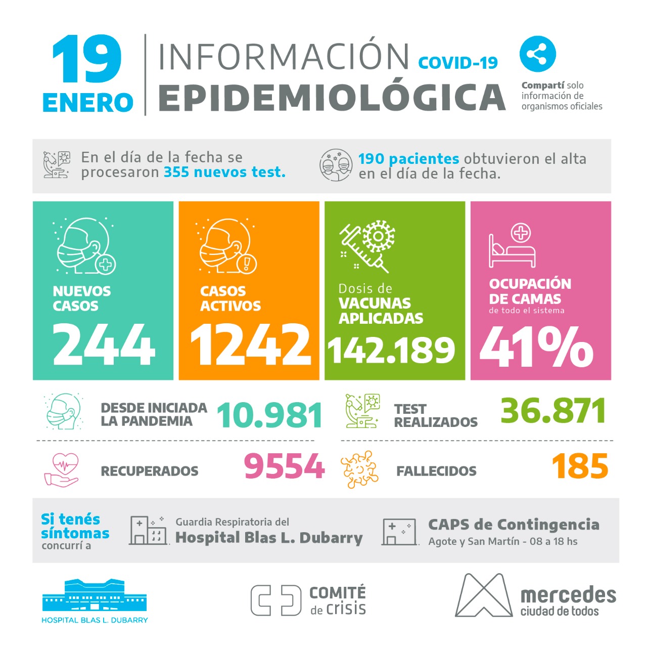 Entre los 355 análisis procesados este miércoles en Mercedes 244 test fueron positivos. En tanto, 190 pacientes recibieron el alta médica. Con estos números son … Leer.