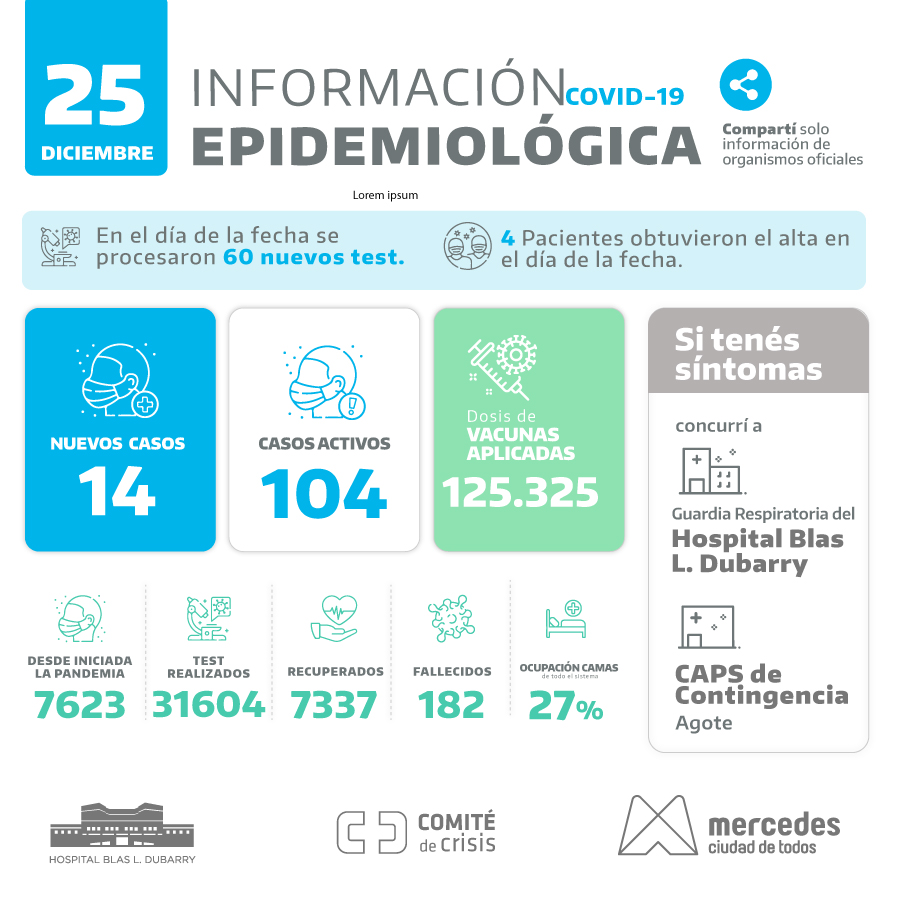 En 60 test analizados en este sábado 25 de diciembre 14 resultaron positivos para covid-19 mientras que 4 vecinas y vecinos obtuvieron el alta médica. … Leer.