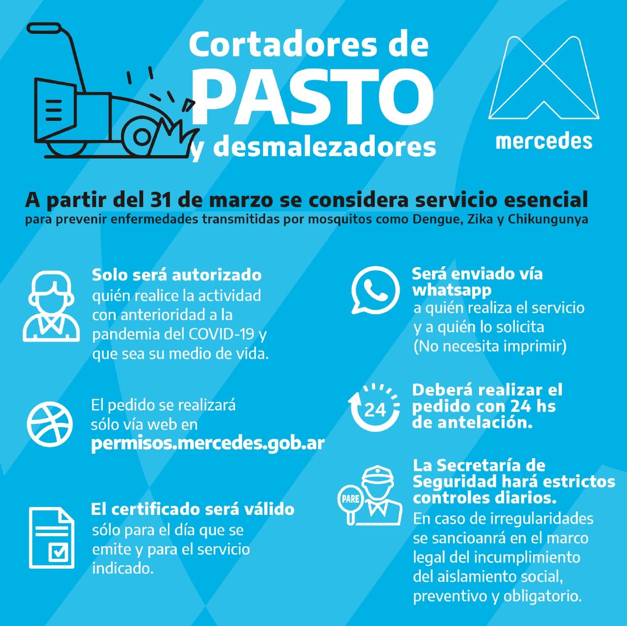 La Municipalidad de Mercedes oficializó la autorización para las personas que trabajan de cortar pasto y desmalezar terrenos y domicilios con el fin de combatir … Leer.