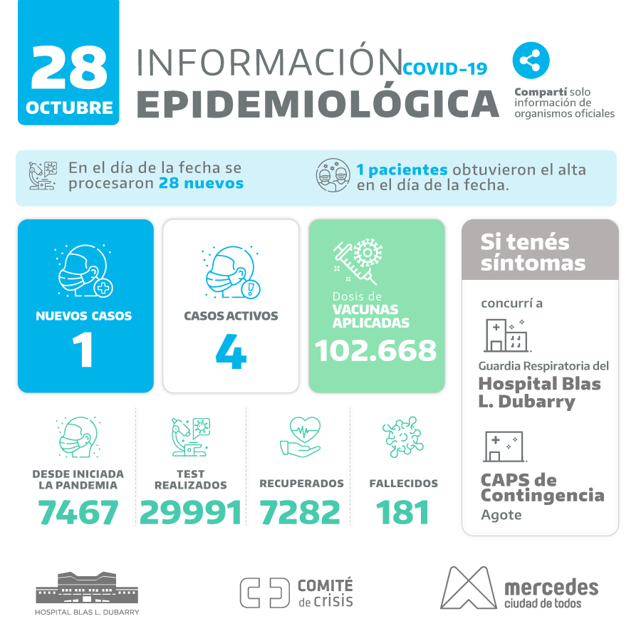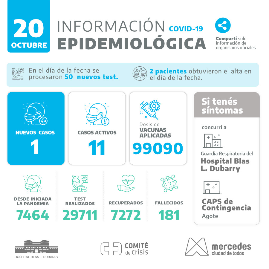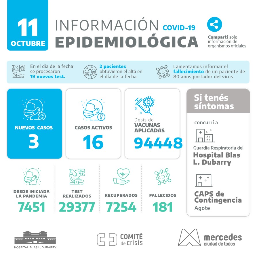 Otra jornada con cierre sin casos positivos se vivió en Mercedes. Tampoco se produjeron altas. Los test resultaron 33 para este lunes 1 de noviembre. … Leer.