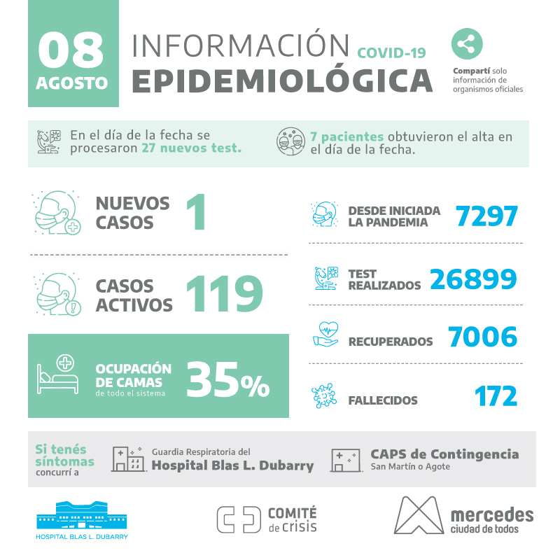 La información epidemiológica de Mercedes da cuenta de la realizacón de 21 análisis, de los cuales un sólo paciente recibió la confirmación de tener el … Leer.