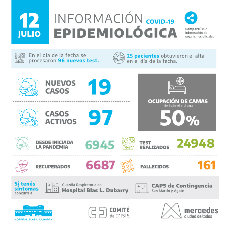 En el día de la fecha no se registraron casos positivos del covid-19 a en Mercedes. Por su parte, 7210 personas obtuvieron el alta. 6 … Leer.
