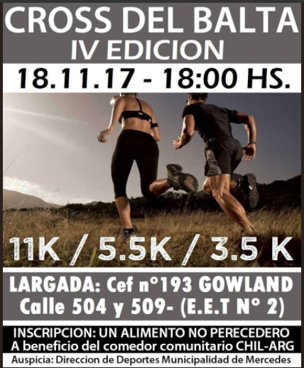 En Gowland, hoy desde las 18 se estará llevando adelante la cuarta edición del Cross del Balta. Tendrá las distancias de 11k, 5,5k y 3,5k … Leer.