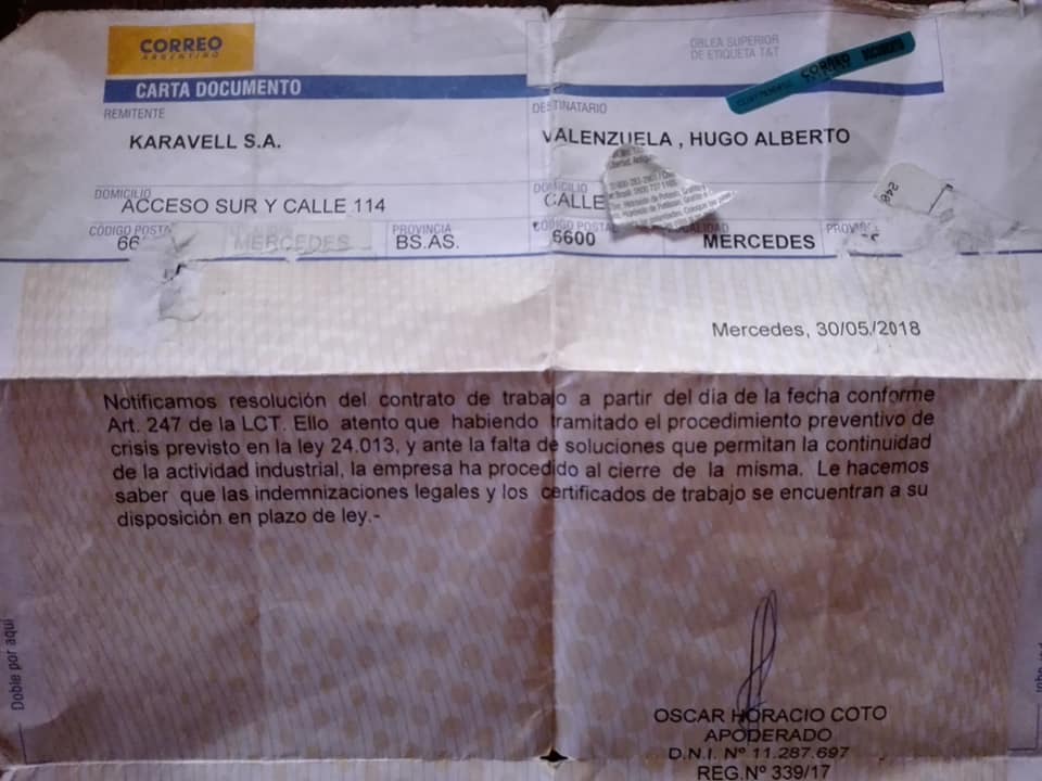 Tras versiones de ayuda que nunca llegaron finalmente las cartas documentos de despido a los empleados de la empresa Karavell empezaron a llegar, según los … Leer.