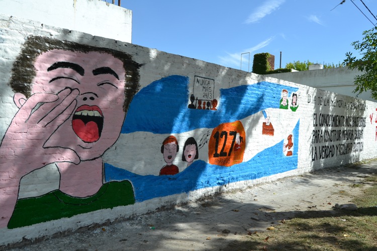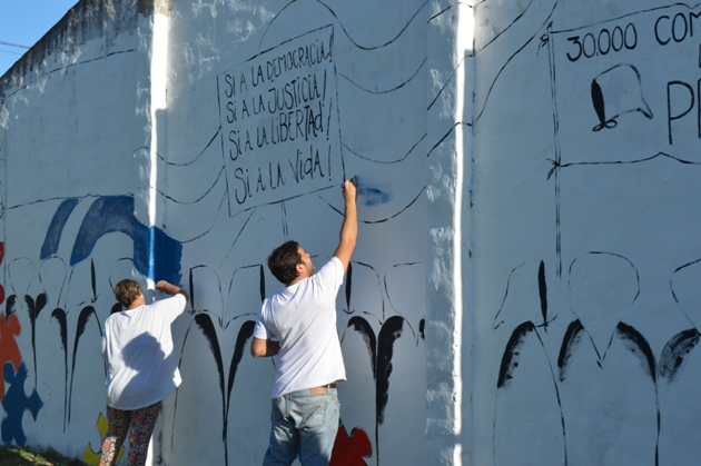 Anticipando el Día de la Memoria, la Verdad y la Justicia, la Juventud Radical de Mercedes realizó en la tarde del viernes último y madrugada del 24 de marzo, un mural que recuerda el inicio de «la noche más larga» y homenajea a los nietos recuperados en los años de democracia.