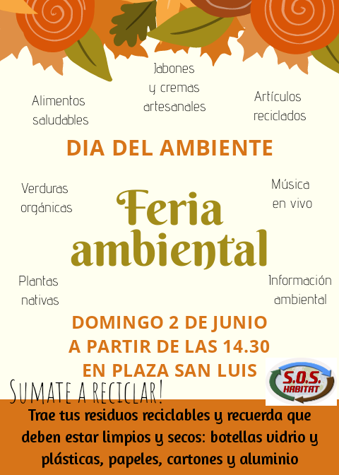 Organizado por la Asociación Civil S.O.S. Hábitat, el venidero 5 de junio, Día del Ambiente, realizarán en la Plaza Rivadavia (Plaza San Luis) un evento … Leer.