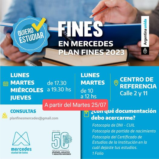 Desde la Inspección de Adultos del área de educación y el Programa FINES anunciaron que a partir del martes 25 de julio inician las inscripciones … Leer.