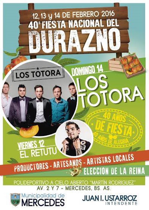 La Fiesta Nacional del Durazno será «libre, pública y gratuita». Inicia el viernes, dedicado al folklore en Plaza San Martín y continúa sábado y domingo en el Parque Municipal. Marama y Bruno Arias estarán cerrando.