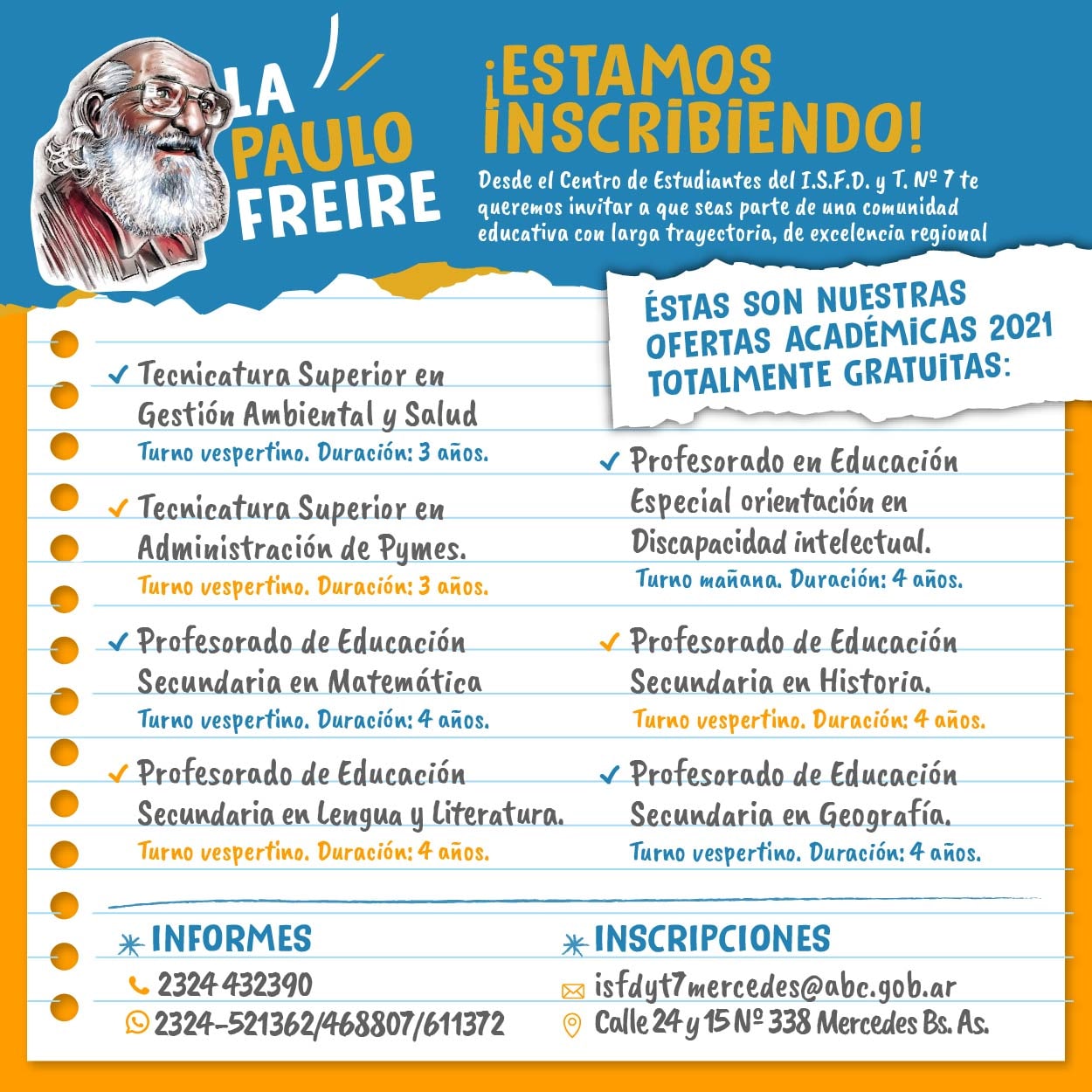 Desde el Centro de Estudiantes -perteneciente a la agrupación Paulo Freire- se viene trabajando y brindando ayuda a todos aquellos interesados que quieran recibir información … Leer.