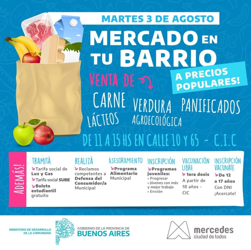 Llega a Mercedes nuevamente la propuesta de “Mercado en tu barrio” con excelentes precios y calidad para adquirir productos alimenticios. Además, con cuenta DNI, descuentos … Leer.
