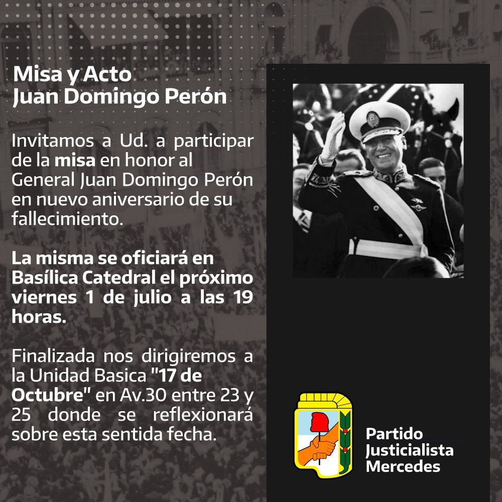PJ Mercedes invita a conmemorar al General Perón, a 48 años de su fallecimiento