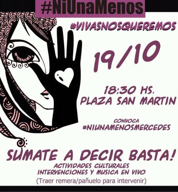 El colectivo #NiUnaMenosMercedes invita a todos los vecinos a pedir que se terminen los femicidios. A partir de las 18:30 horas, intervenciones artísticas bajo esta … Leer.