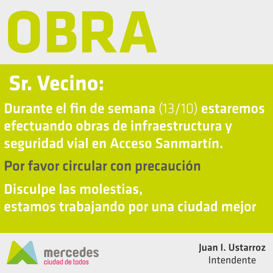 Durante el fin de semana largo se estarán realizando obras de infraestructura en Acceso Sanmartin. La Municipalidad de Mercedes informó que se está trabajando en … Leer.