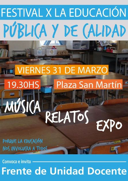 Los docentes de nuestra ciudad enmarcados en la UEB efectuaron un acto en Plaza San Martín reclamando sus condiciones laborales mejoren y se concrete el … Leer.