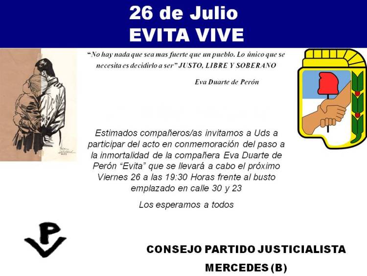 Los peronistas de la ciudad de Mercedes, se congregaron a honrar a su líder espiritual, en torno al busto de María Eva Duarte de Perón, … Leer.
