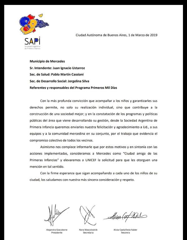 La Sociedad Argentina de la Primera Infancia (SAPI) declaró a la ciudad de Mercedes “Amiga de las Primeras Infancias”. El hecho se conoció días atrás … Leer.