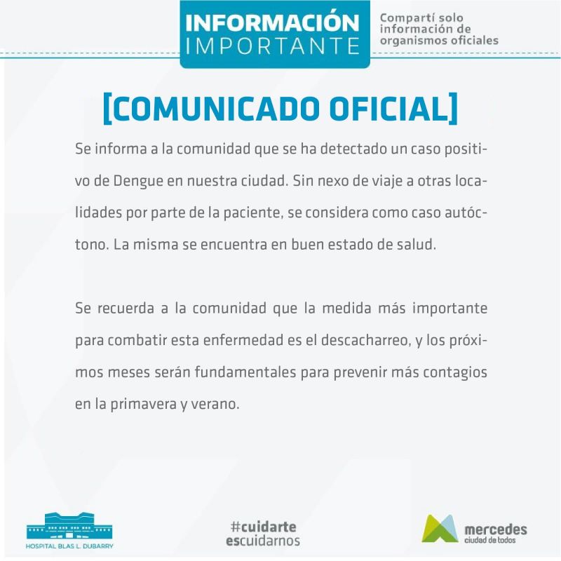 Desde la Municipalida de Mercedes y el Hospital Blas L. Dubarry confirmaron de manera oficial que se detectó un caso positivo de dengue. Se trata … Leer.